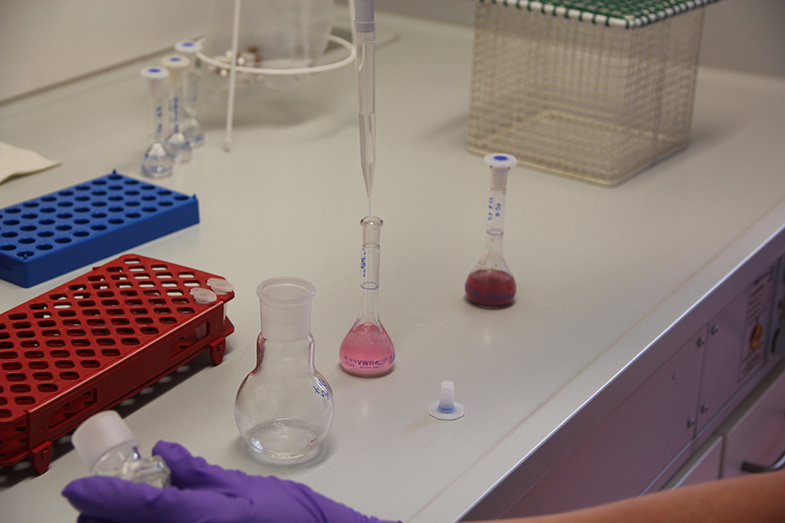 Bei Pulvern und Flüssigkeiten benötigt das Labor nur eine kleine Menge der Substanz. Die Menge, die auf eine Messerspitze passt (20 – 50 mg) bzw. zwei bis drei Tropfen reichen aus. Wichtig ist, dass du vor der Sprechstunde in dem gesamten Pulver, aus der du die Probe entnimmst, Klumpen oder sichtbare Kristalle zerkleinerst und das Pulver anschließend gut durchmischst. So kann der Wirkstoffgehalt in deinem Pulver genauer ermittelt werden. Dazu kannst du das Pulver auf eine glatte und saubere Oberfläche geben und mit einer sauberen Karte bearbeiten („hacken“) und dann mit einem Spatel oder Löffel gründlich durchmischen. Anschließen solltest du die Oberfläche, Karte, Löffel, Spatel usw. sorgfältig reinigen. Falls du z.B. noch eine weitere Probe bearbeiten möchtest und nicht sauber arbeitest, verunreinigst du deine Proben durch „Kreuzkontaminationen“.